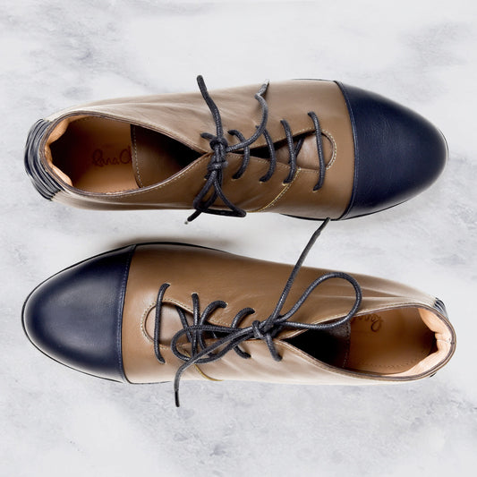 Dar Ankle Boot | Greige & Navy Calfskin Leather