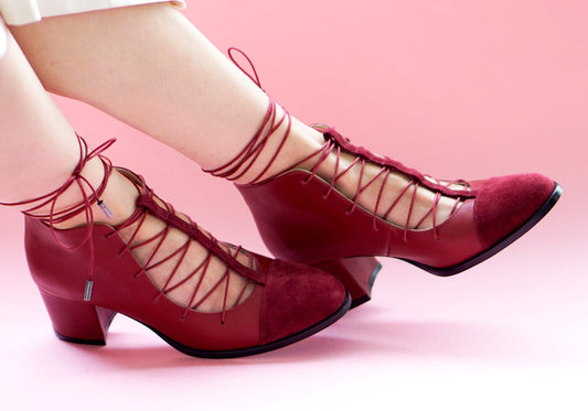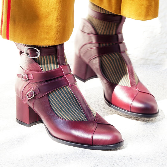 Dinieh 5cm Block Heel Ankle Boot | Double Cherry Calfskin Leather