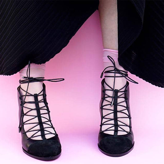 Alya Block Heel Boot | Black Calfskin & Suede Leather