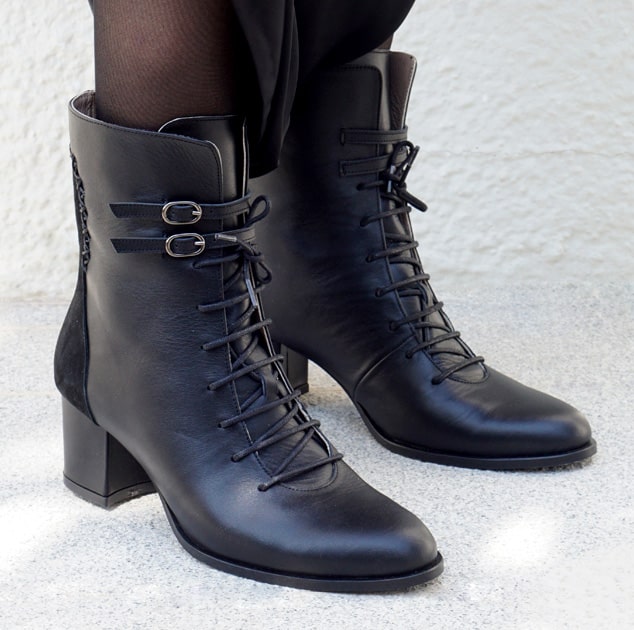 Specifications: calfskin leather | laces to close | 2 buckle details | leather lining | padded leather insole | neolight sole | block heels at 50 mm | handmade