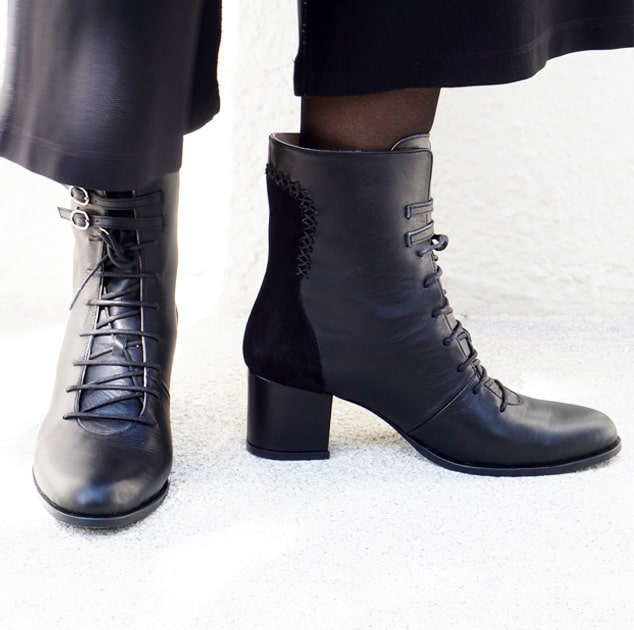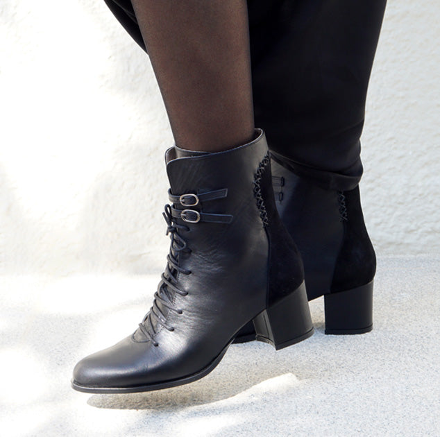 Alya Block Heel Boot | Black Calfskin & Suede Leather