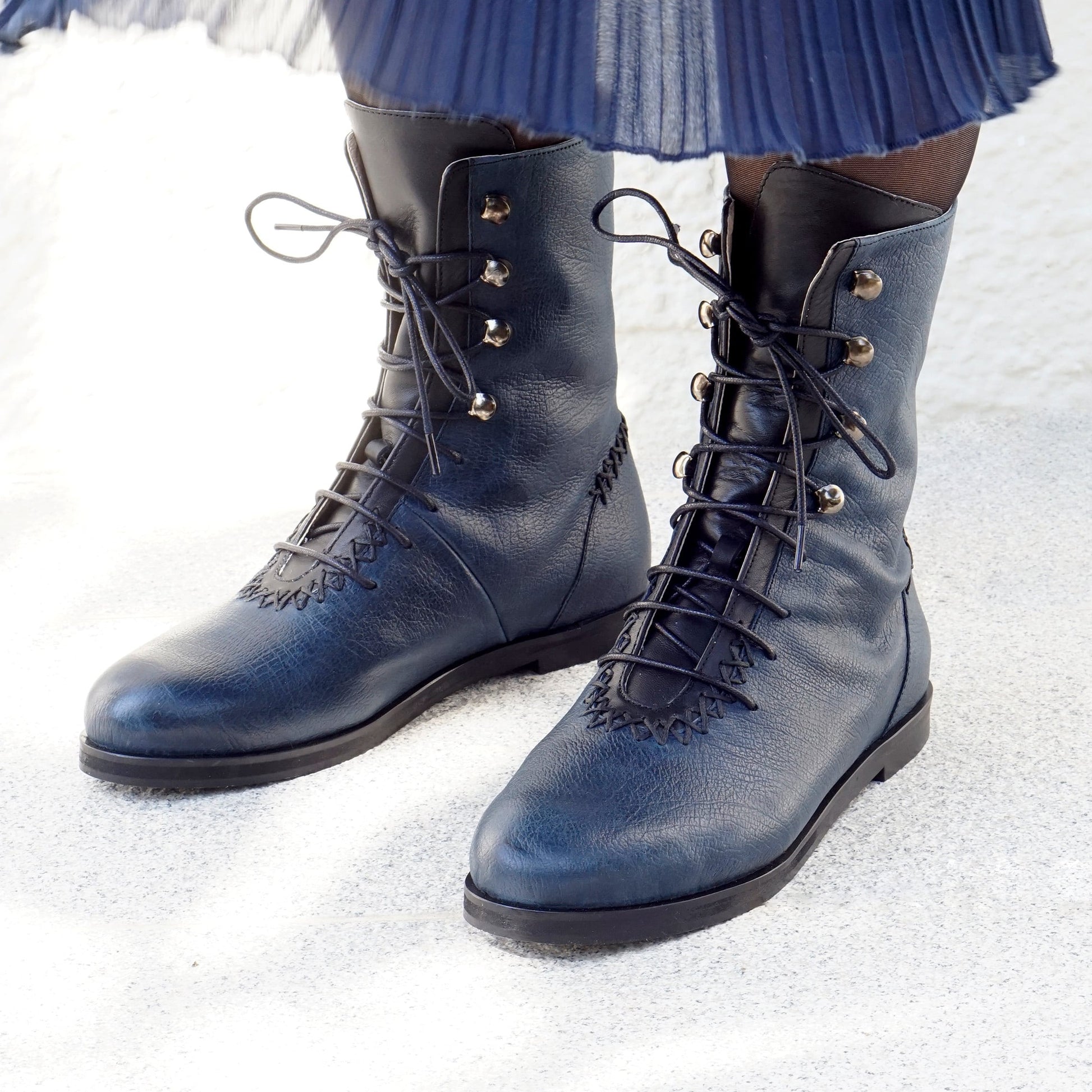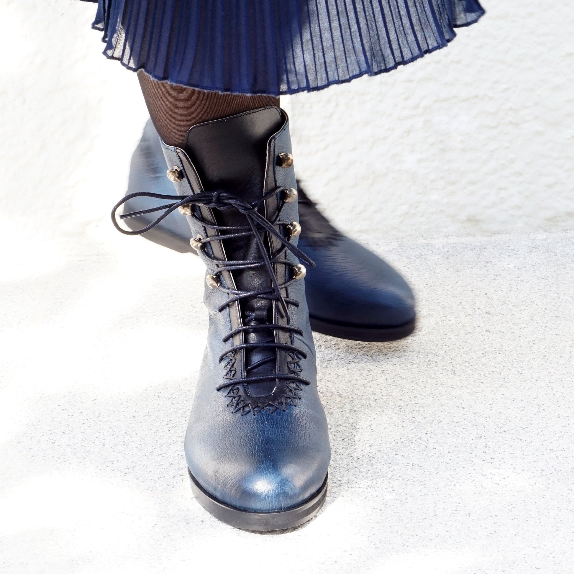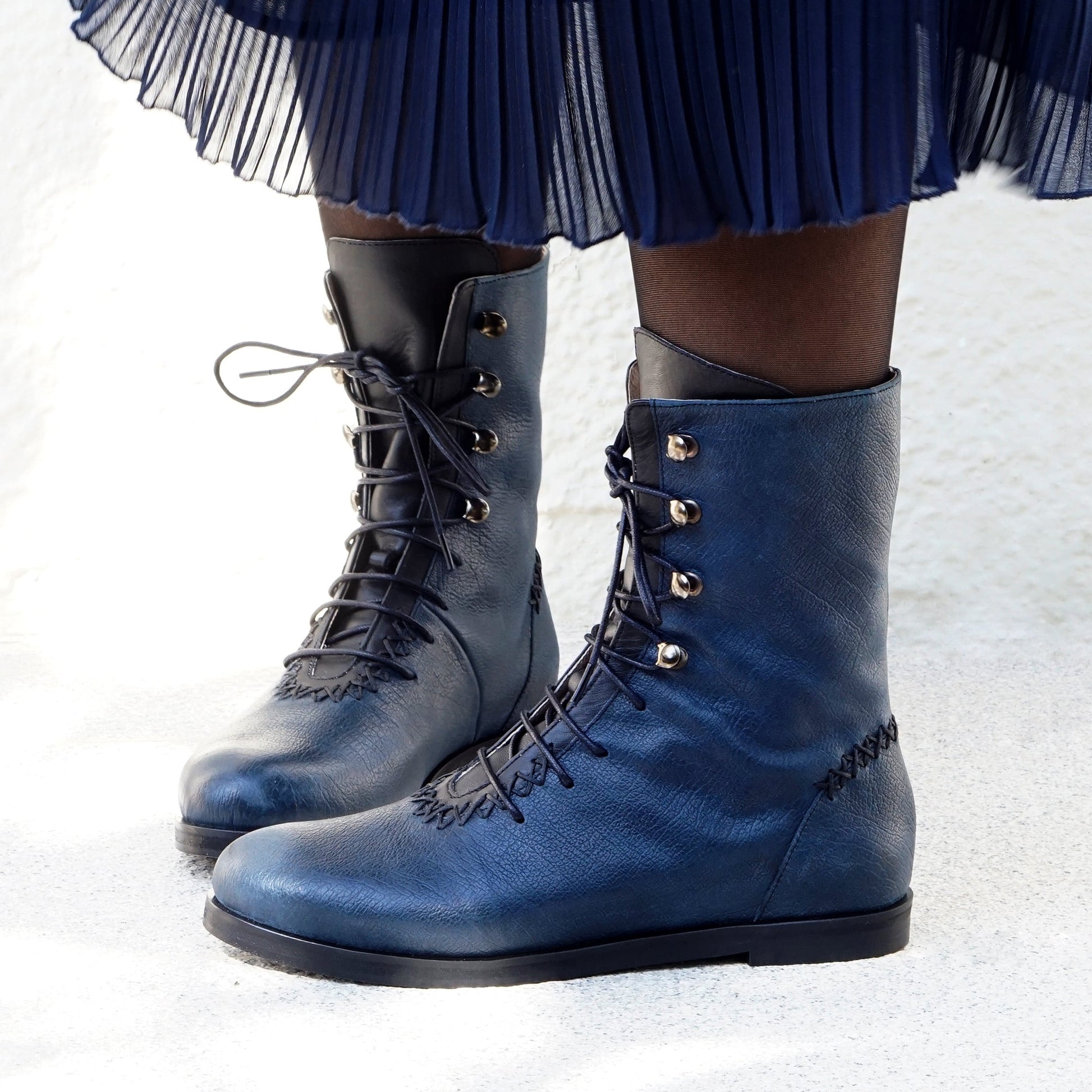 Rehan Calf Boot | Navy Blue & Black Calfskin Leather